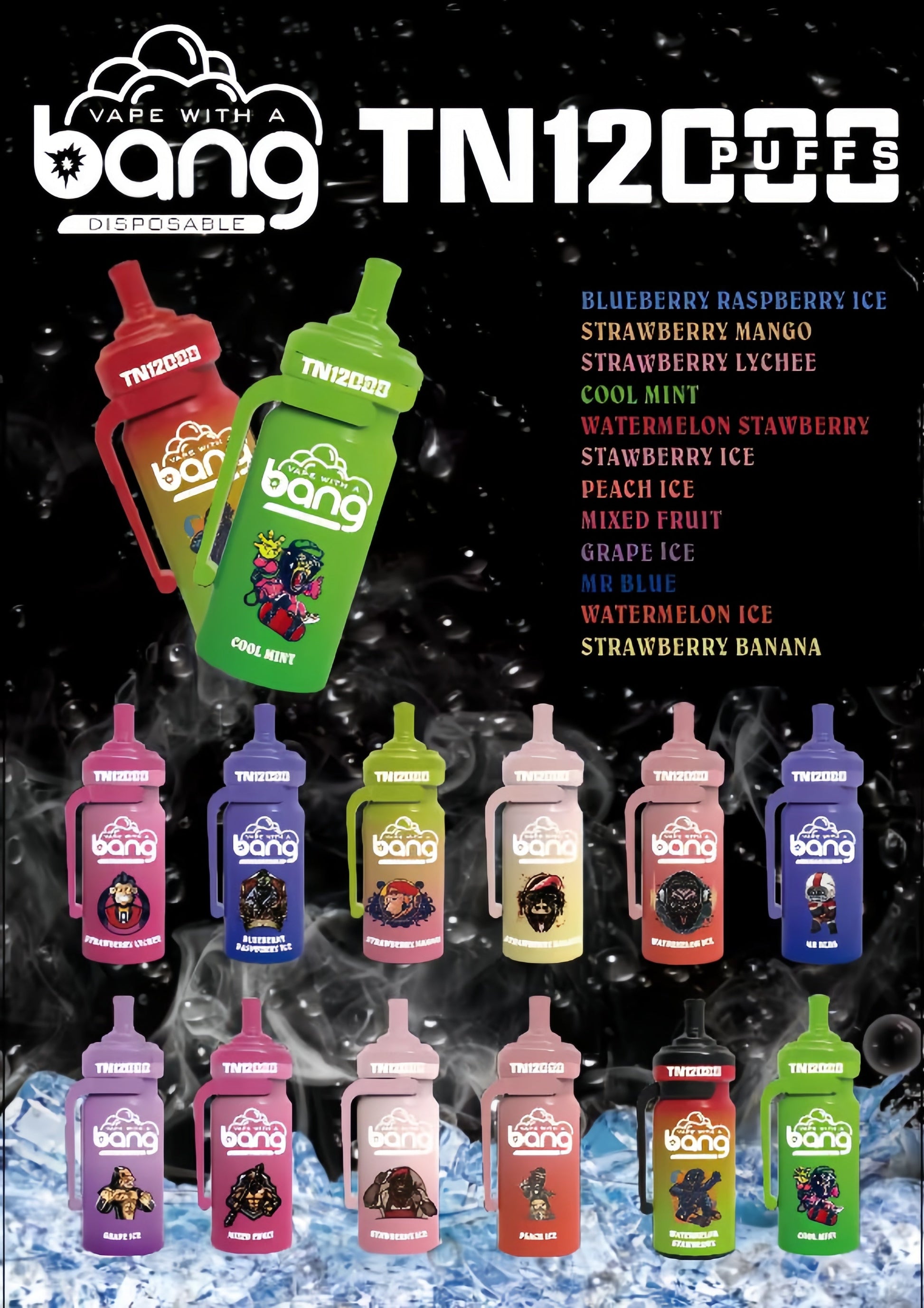 Bang TN 12000: Immerse yourself in the evolution of vaping with the Bang TN 12000, a revolutionary in the e-cigarette space that promises an unparalleled journey back to the essence of smoking. This pioneering device is designed to revolutionize your vaping experience, providing you with satisfaction and convenience like never before. The Bang TN 12000 combines cutting-edge technology with a sleek design, ensuring an extraordinary vaping adventure. With innovative features and superior performance, this e-cigarette is aimed at enthusiasts seeking the ultimate vaping experience. Embark on the forefront of vaping innovation and enhance your pleasure with the Bang TN 12000 puffs.