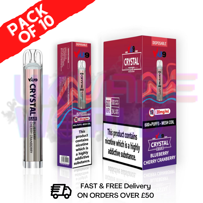 Blueberry Cherry Cranberry - VU9 Classic Pack Of 10 Cheap Disposable subtle yet tantalizing mix of sweet blueberry, tart cherry, and tangy cranberry flavours