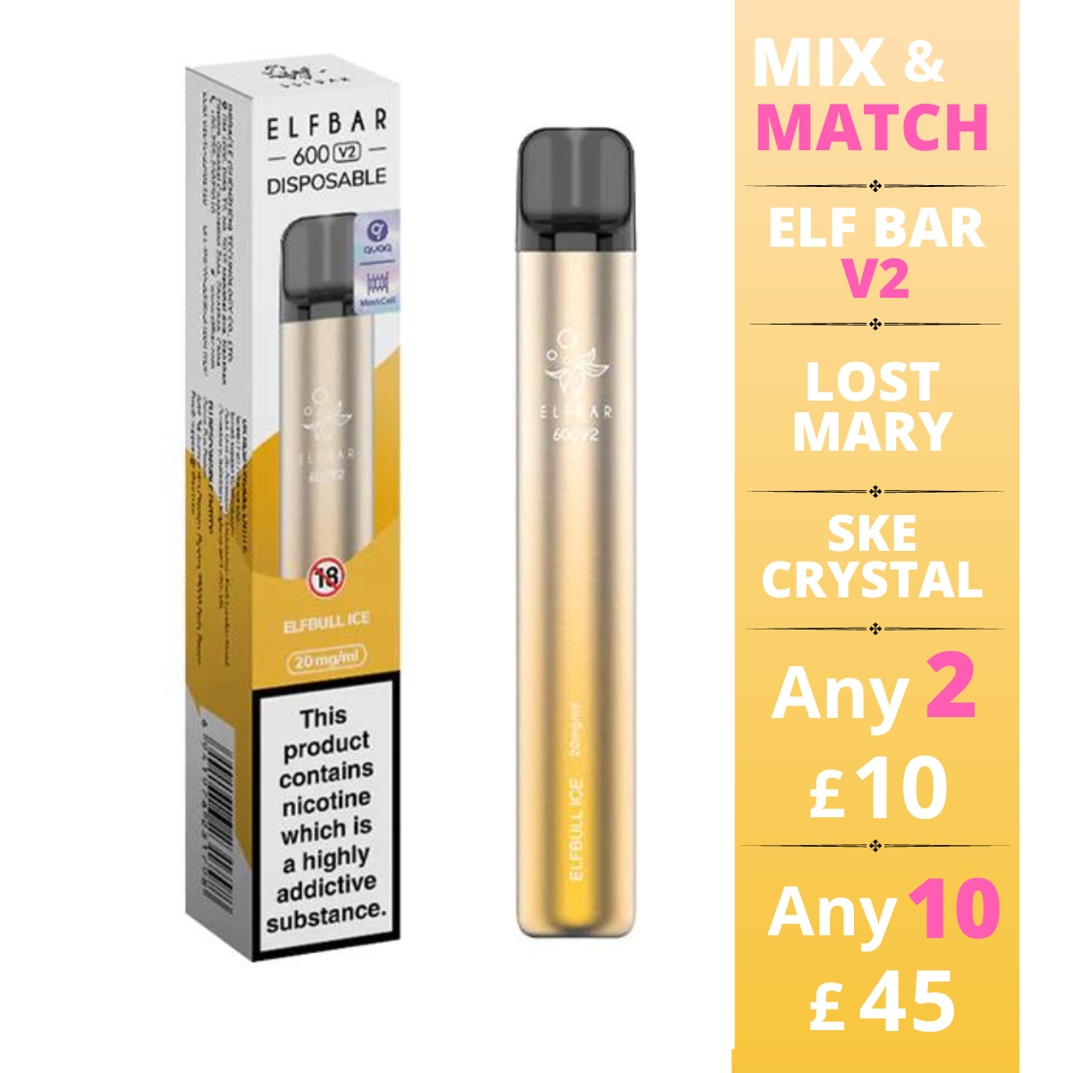 Experience an explosive fusion of flavour with Elfbull Ice - Elf Bar 600 V2. A perfect combination of blended berries and menthol, each puff provides a smooth and refreshing taste. Perfect for an all-day vape, the Elfbull V2 will please your taste buds and leave you feeling invigorated.