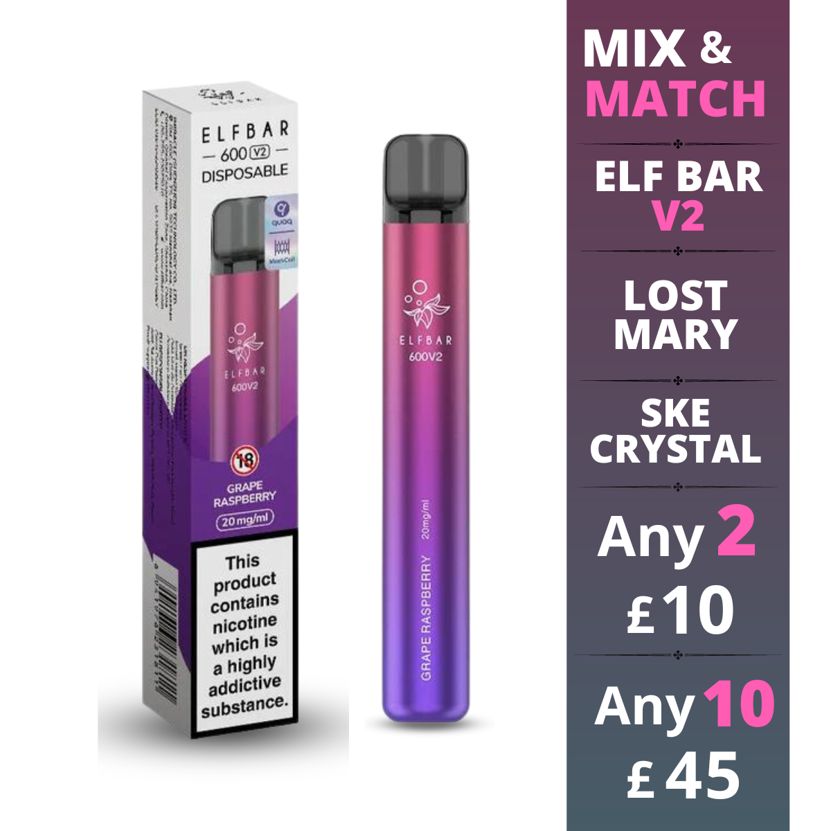 Introducing the Grape Raspberry Elf Bar 600 V2, the perfect choice for vaping enthusiasts. This unique flavor offers a new level of enjoyment with its sweet grape and raspberry notes. The 600 V2 version is a disposable vape with an ultra-smooth draw offering hours of vaping pleasure.