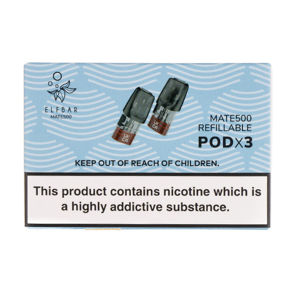 A pack of 3 replacement Mate 500 refillable pods for the . Each refillable pod has a 2ml pod capacity and is compatible with high PG e-liquids. The ELF Bar Mate 500 is suitable for mouth to lung vapers who prefer modest amounts vapour over a cloudy exhale.