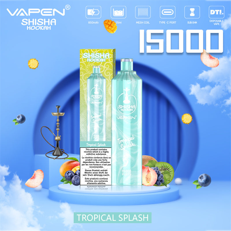 The container design of this handheld vape provides a comfortable user experience. Pretty Crystal appearance. Once you hold it. you`ll love it! it delivers 15000 puffs of the purest of flavor. The new SHISHA Hookah 15000 comes with an 850mAh rechargeable battery and pre-filled 25 ml e-liquid. The contrasting colors of this handheld vape box provide enjoyment. and personality on every puff! The Sub-ohm coil supports the DTL Structure for purest shisha hookah flavors. updated Airhole design brings the best vaping experience. Come to get the best wholesale price and fast shipping!
