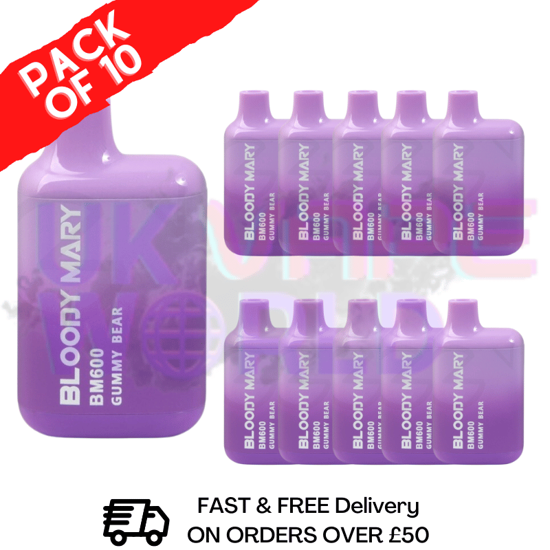 Gummy Bear - Bloody Mary 600Puff Disposable Pack Of 10 With each puff, you'll enjoy the sweet and sour taste of a gummy bear with a hint of tangy...