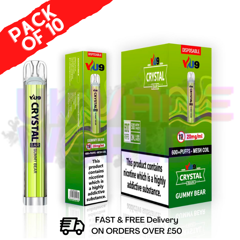 Gummy Bear - VU9 Classic Pack Of 10 Cheap Disposable are a sweet treat with a distinct, tangy and fruity flavour offering an endless taste of Candy BLISS!