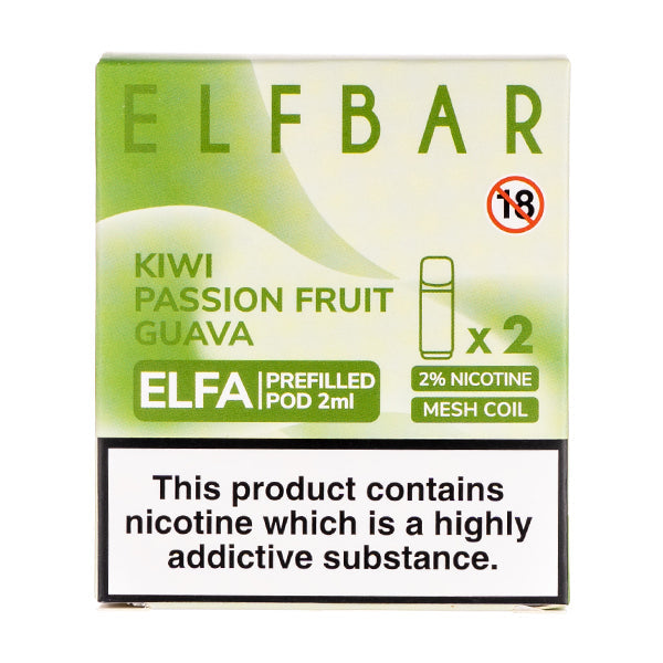 The Elf Bar Kiwi Passion Fruit Guava Elfa Prefilled Pods are designed for the use with the only. Enjoy tropical flavours throughout, thanks to sweet kiwi, juicy passion fruit and tangy guava.