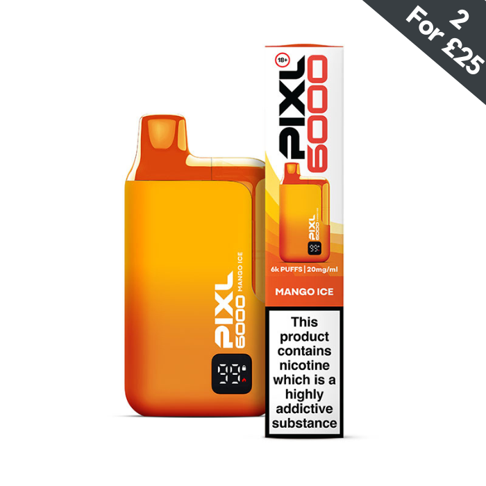 Experience an exotic and refreshing vape with Mango Ice PIXL 6000 Disposable Vape. Made with soft, ripe mangoes and a hint of ice, this slightly creamy vape offers a unique and smooth sensation. Enjoy the perfect blend of flavour and freshness in every puff.