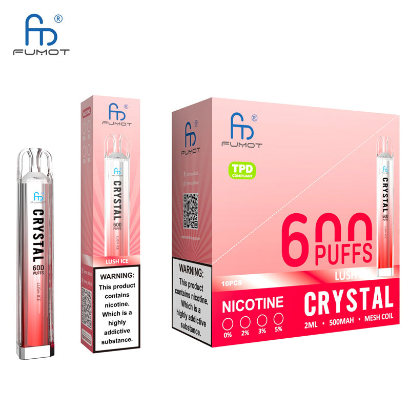 Fumot Original RandM Crystal 600 is a disposable vape device. It contains 2ml 0%.2.3%.5% nicotine salt e-juice and vape 600 puffs. There are 12 flavors for you to choose.