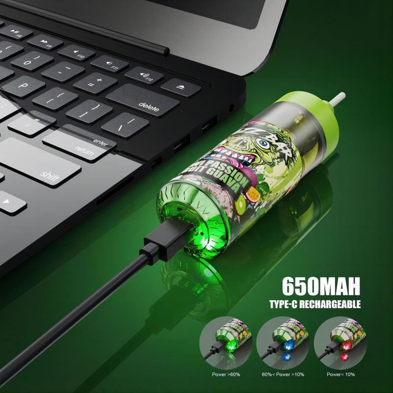 – **Rechargeable Power:** Equipped with a 650mAh rechargeable battery. the Razz Bar can be easily powered up via Type-C charging. ensuring you spend less time waiting and more time enjoying.