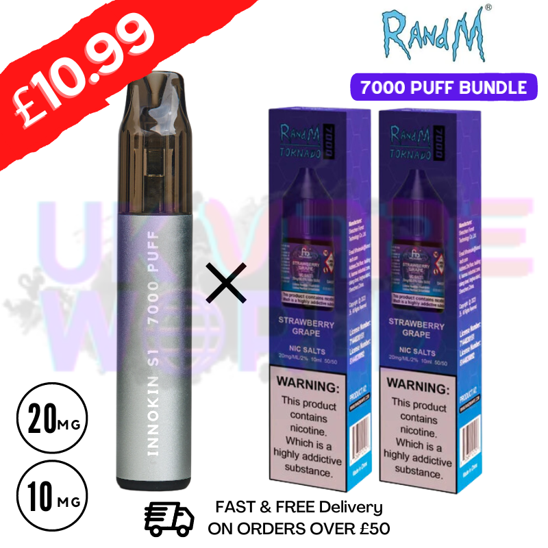 Strawberry Grape - R&M Tornado 7000 Puff Bar (REFIL BUNDLE) shook the system with new head-turning 7000 puffs bars disposable devices a more affordable substitute for customers great option because of their scrumptious flavours, Rechargeable kit