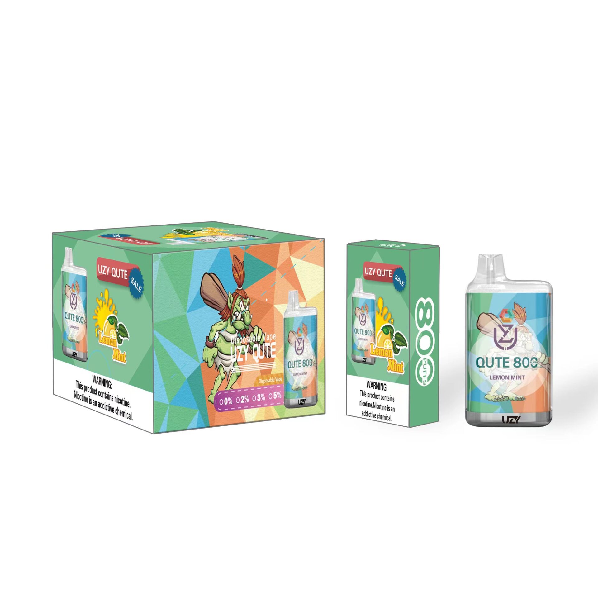 The UZY QUTE 800 puffs is a disposable electronic cigarette. With a built-in 550mAh battery and 3.0ml of pre-filled nicotine salt e-liquid, this compact device delivers up to 800 puffs of smoke, and the 1.2 Ohm mesh coil RGB Light delivers pure flavor for a fantastic taste from the first to the last puff.