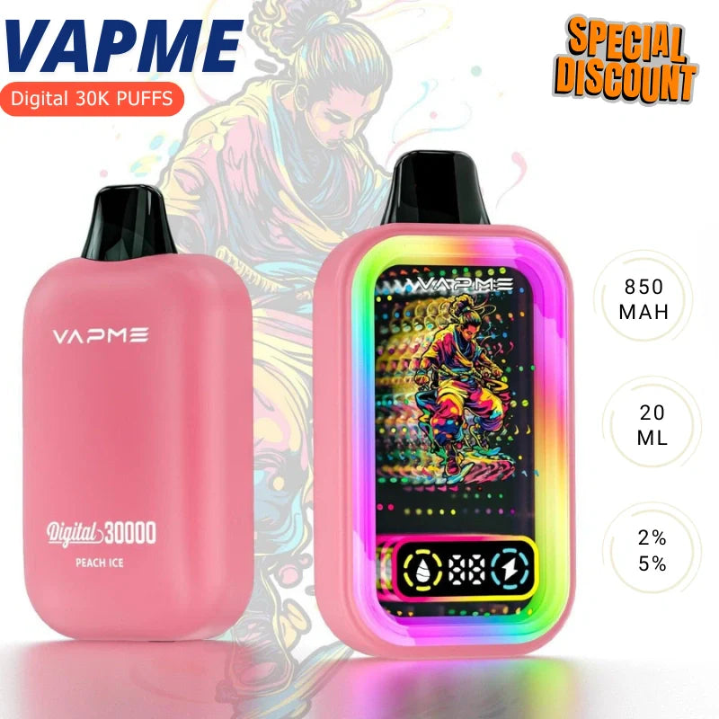 Vapme Digital 30k Lung Inhalation Vape Best Seller Wholesale Price designed for those who crave intense lung hits, it offers up to 30,000 puffs powered by an 850mAh battery.