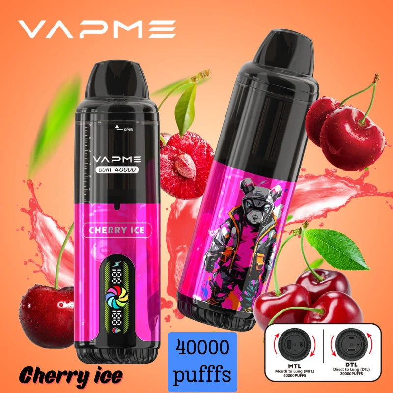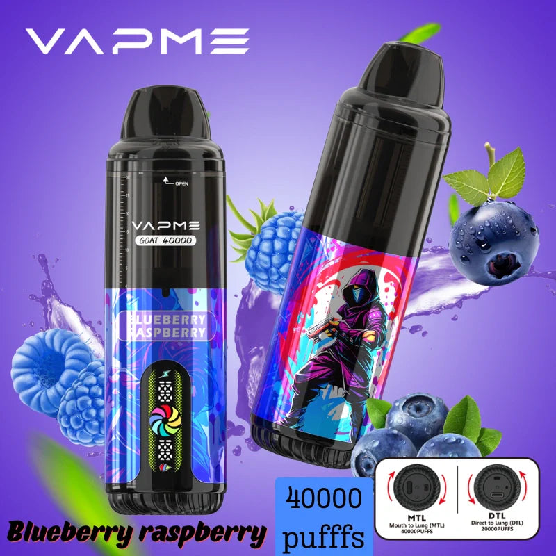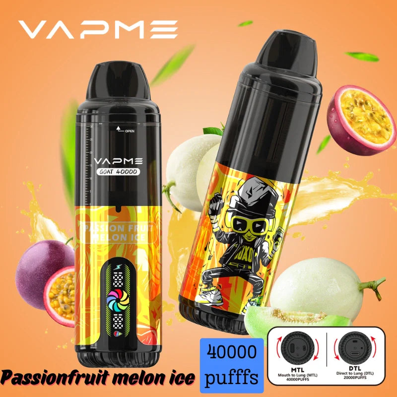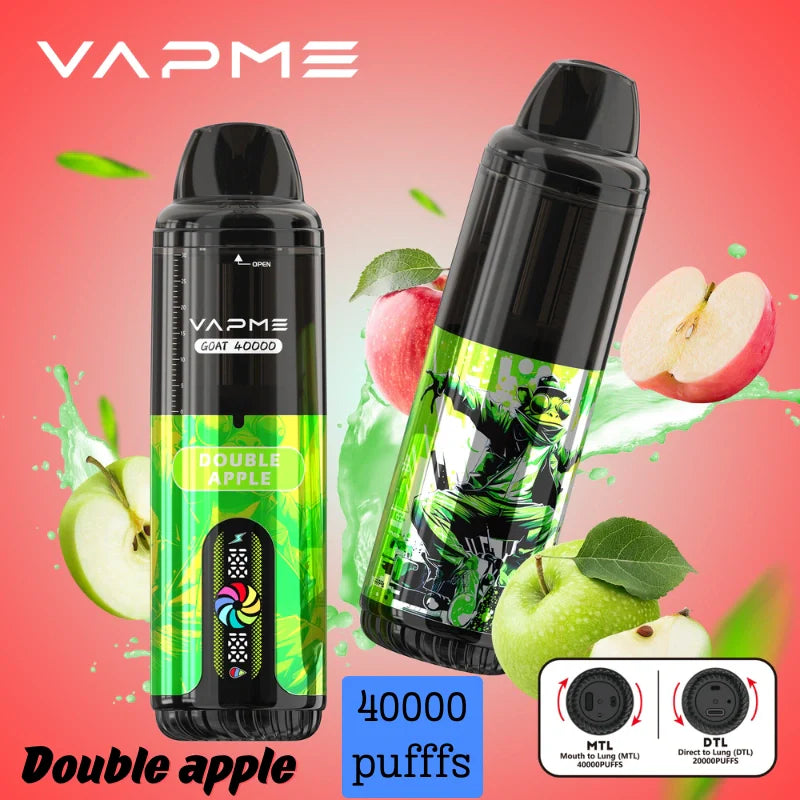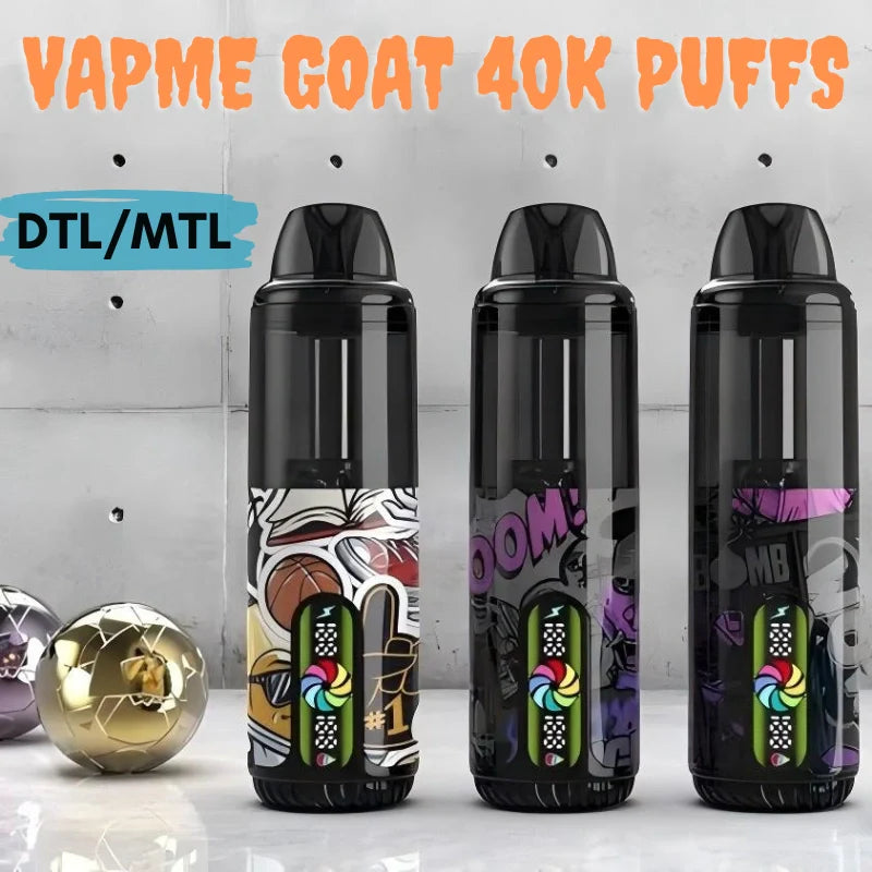 GOAT 40000 Puffs with dual mesh coils and compatibility with DTL/MTL styles, 40k of vapme goat delivers a smooth, satisfying hit whether you’re cloud-chasing or flavor-savoring. Vape of vapme goat 40k holds 30ml of e-liquid, features LED display, Type-C charging, and delivers up to 40,000 puffs.