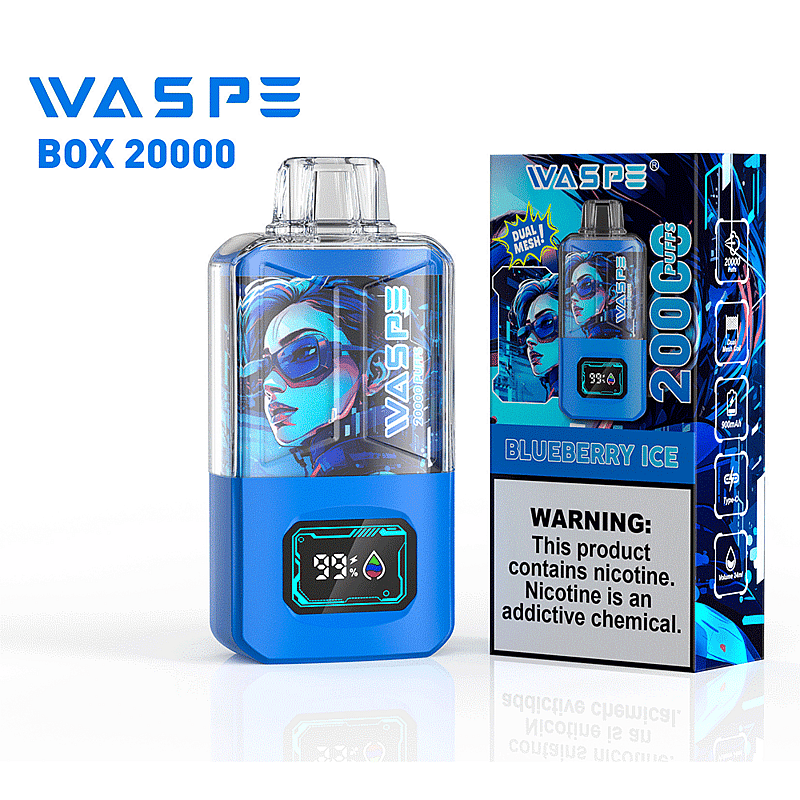 WASPE 20000 Puffs LCD Display Rechargeable Disposable Vape, an advanced vaping device designed to deliver an exceptional and long-lasting experience. With an impressive 20,000 puffs, this vape pen is ideal for those seeking extended use and convenience.