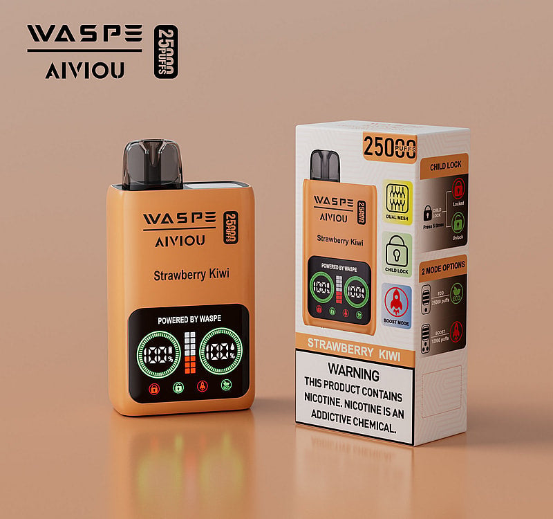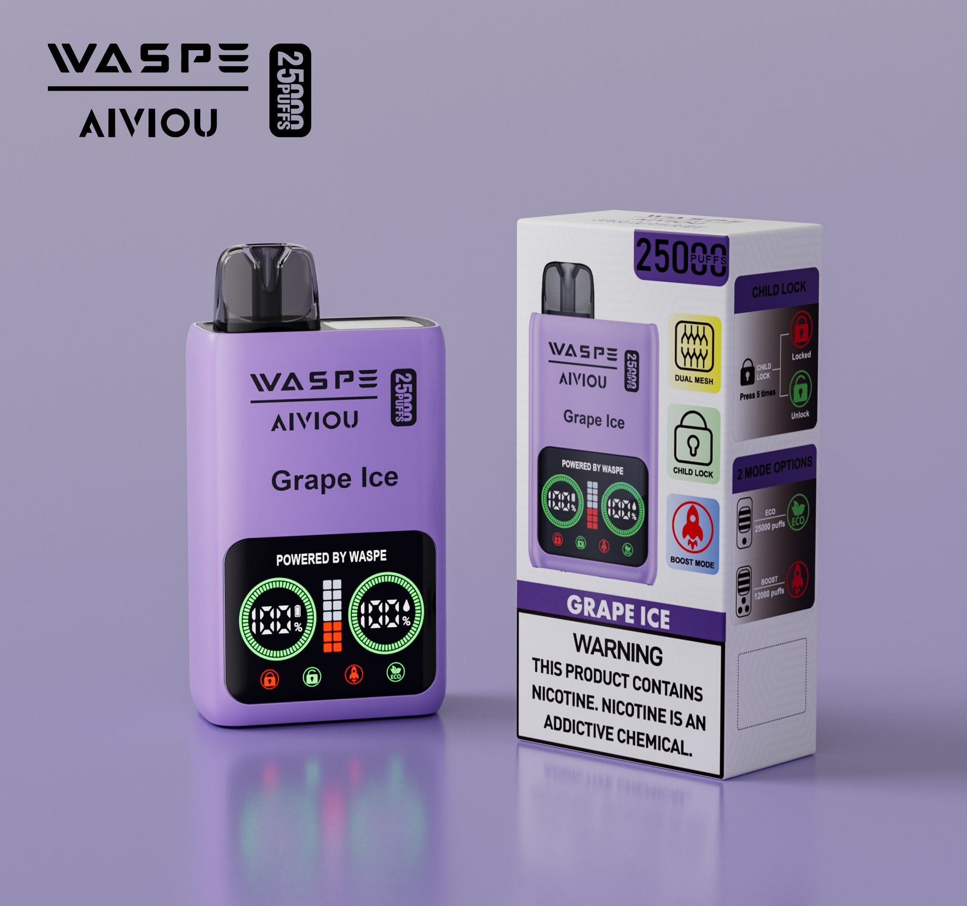 WASPE 25000 25K Puffs Disposable Vape Pen offers a superior vaping experience with an impressive 25000 puffs per device. Available in 0%, 2%, and 5% nicotine strengths, it caters to a wide range of preferences. This device boasts a 25ml e-liquid capacity, dual mesh coils, an LCD display, and a Type-C charging port. Powered by a 650mAh battery, it ensures long-lasting use. Efficiently packed in cartons of 200 pieces, each weighing 21 kg, it is ideal for both individual users and bulk purchasers.