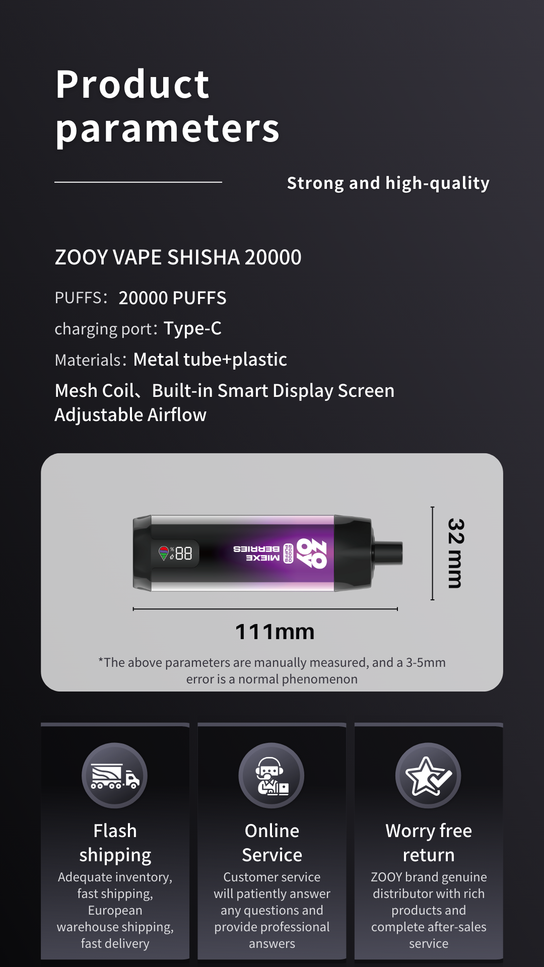 ZOOY SHISHA 20K puff disposable vapes – ZOOY 20000 puff